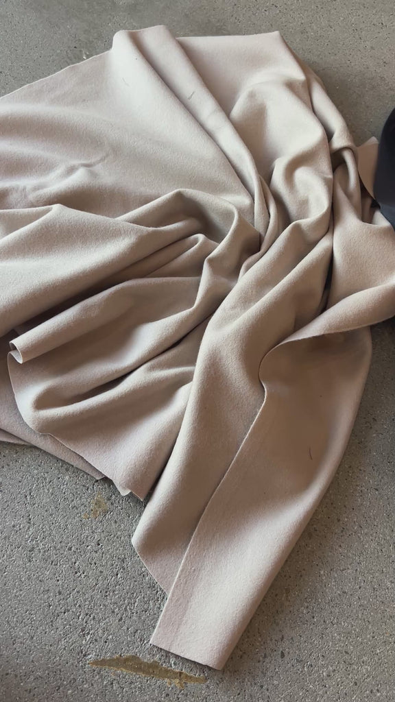 Sophia is a brushed wool from Japan. Similar to a boiled wool, it has a soft, dense feel, though the cut edge will show some light fraying. The nylon content adds stability and helps reduce shrinkage during washing and care. Soft to the touch, this quality is ideal for winter coats and vests.