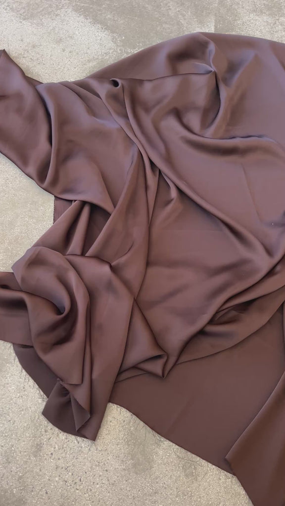 Imitation Acetate is a polyester satin with a delustered finish. The fabric features a sheen but is understated with a slight matte finish. It catches the light with a gentle glow rather than a high shine, making for an elegant and sophisticated texture. At a generous 135cm in width, the fabric is suitable for dresses, skirts, tops, and a robust weight of 135gsm lends to its versatility.