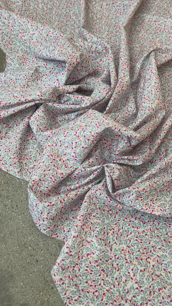 Meadow is a floral printed Japanese cotton lawn cloth with a smooth finish and soft drape. It is lightweight and ideal for warm-weather clothing, with a soft hand-feel that makes it ideal for dresses, blouses, and skirts.