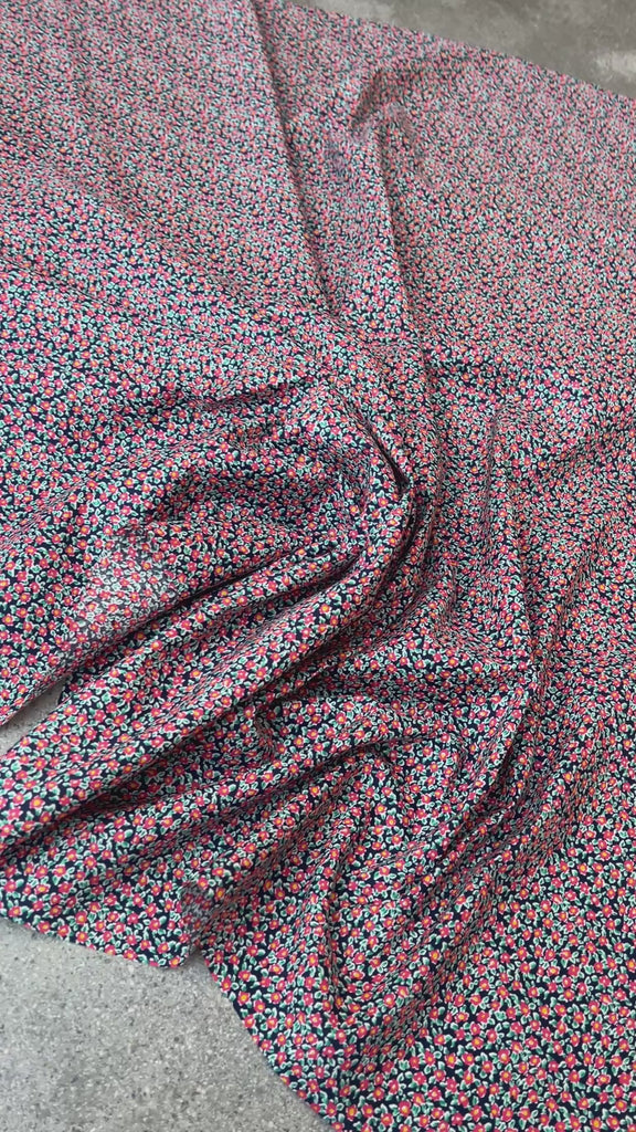 Petite Bloom is a floral printed Japanese cotton lawn cloth with a smooth finish and soft drape. It is lightweight and ideal for warm-weather clothing, with a soft hand-feel that makes it ideal for dresses, blouses, and skirts.
