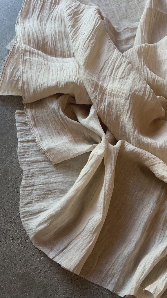Lottie is a yarn dyed open weave linen. This cloth has a beautiful natural crinkle thought and has an aero wash for a gentle drape. Each colour in this range is developed and milled exclusively for us.