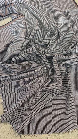 Minda is a structured vertical stripe that feels durable and sturdy. It has a slight rough feel that most unwashed linens do - overtime this will soften. It is not sheer and perfect for most garments. It has no stretch.